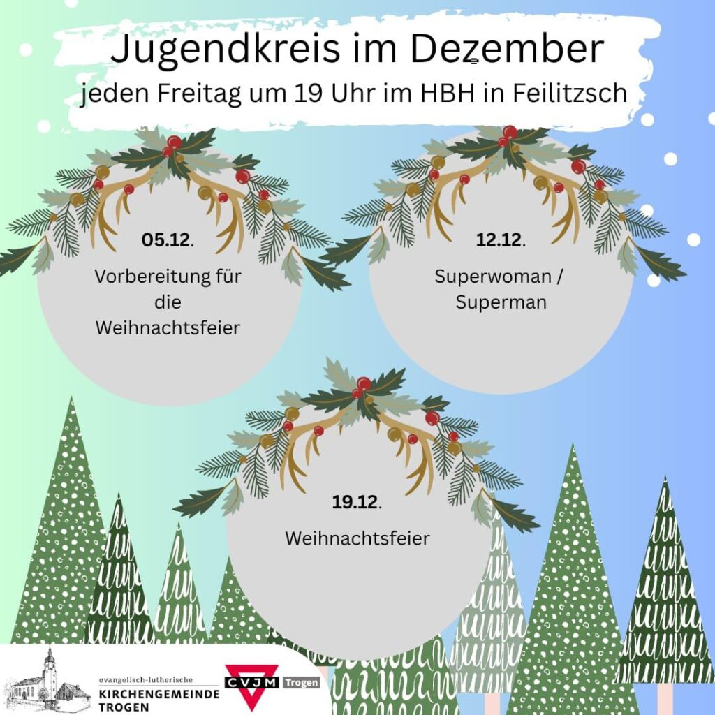 Freitagskreis 20. Dezember 2020 Steffi Das Programm steht auch im aktuellen Gemeindebrief zur Verfügung. Beitrags-Navigation Vorheriger BeitragJungscharNächster BeitragGottesdienstübertragungen in Rundfunk und Fernsehen oder im Internet